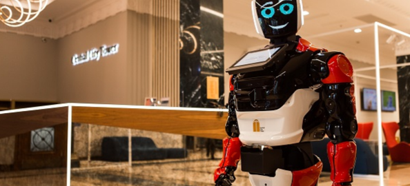 Робот Promobot — это автономный сервисный робот для бизнеса. Робот общается с людьми, распознаёт лица и речь, консультирует, отвечает на вопросы. Благодаря искусственному интеллекту, робот знает буквально всё о месте, в котором работает, и никогда этого не забывает.